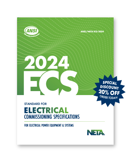 This month’s featured book is the 2024 edition of the ANSI/NETA ECS – Standard for Electrical Commissioning Specifications for Electrical Power Equipment and Systems. The ECS Standard was developed for use by those responsible for testing and commissioning newly installed or retrofitted electrical power systems and equipment to guide them in specifying and performing the necessary inspections, tests, measurements, and system performance verification to commission an electrical power system infrastructure. ANSI/NETA ECS aids in ensuring safe, reliable operation of the electrical power equipment and systems. It is essential to commission newly installed and retrofitted electrical power equipment and systems. Additionally, acceptance testing of the equipment provides the baseline test results for maintenance programs and equipment trending, while commissioning verifies the electrical equipment and system meets the owner’s project requirements and basis of design. ANSI/NETA ECS - 2024 is the third edition and most current revision of this Standard and was approved as an American National Standard on July 2, 2024.